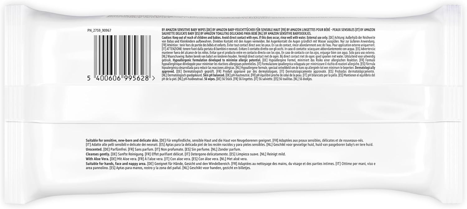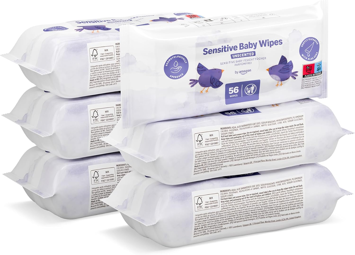 Amazon Brand – Mama Bear Sensitive Unscented Baby Wipes, 336 Count (6 Packs of 56)