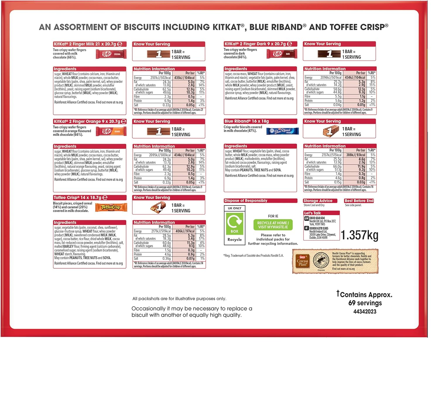 Nestlé Kitkat and Friends Big Biscuit Box | 69 x Chocolate Biscuit Bars - KitKat, Blue Riband, Toffee Crisp | Bulk Chocolate Box 1.357kg