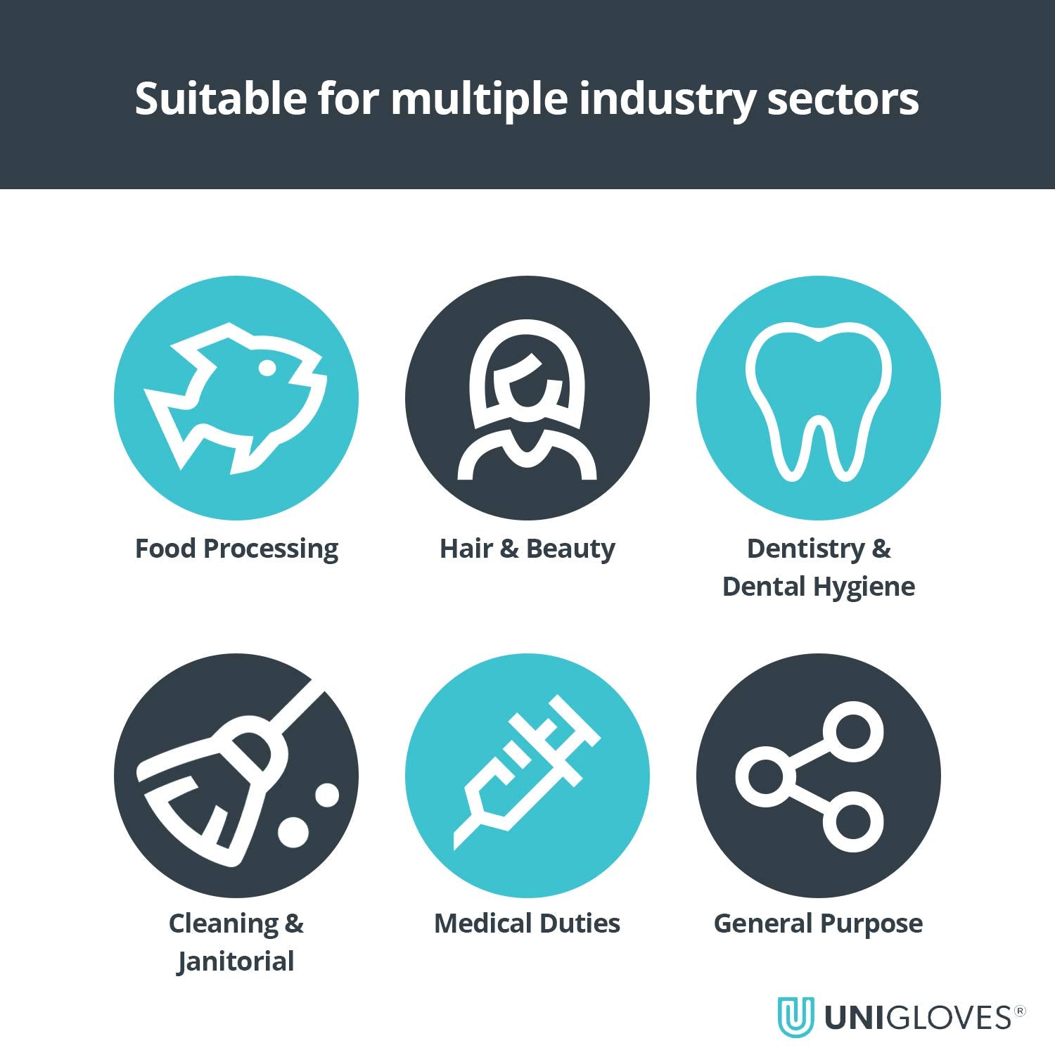 Designed for food handling, cleaning, and healthcare environments, these medical-grade gloves conform to the hand during use, providing a comfortable fit and smooth, hygienic handling. They are suitable for contact with all food types and are resistant to chemicals.